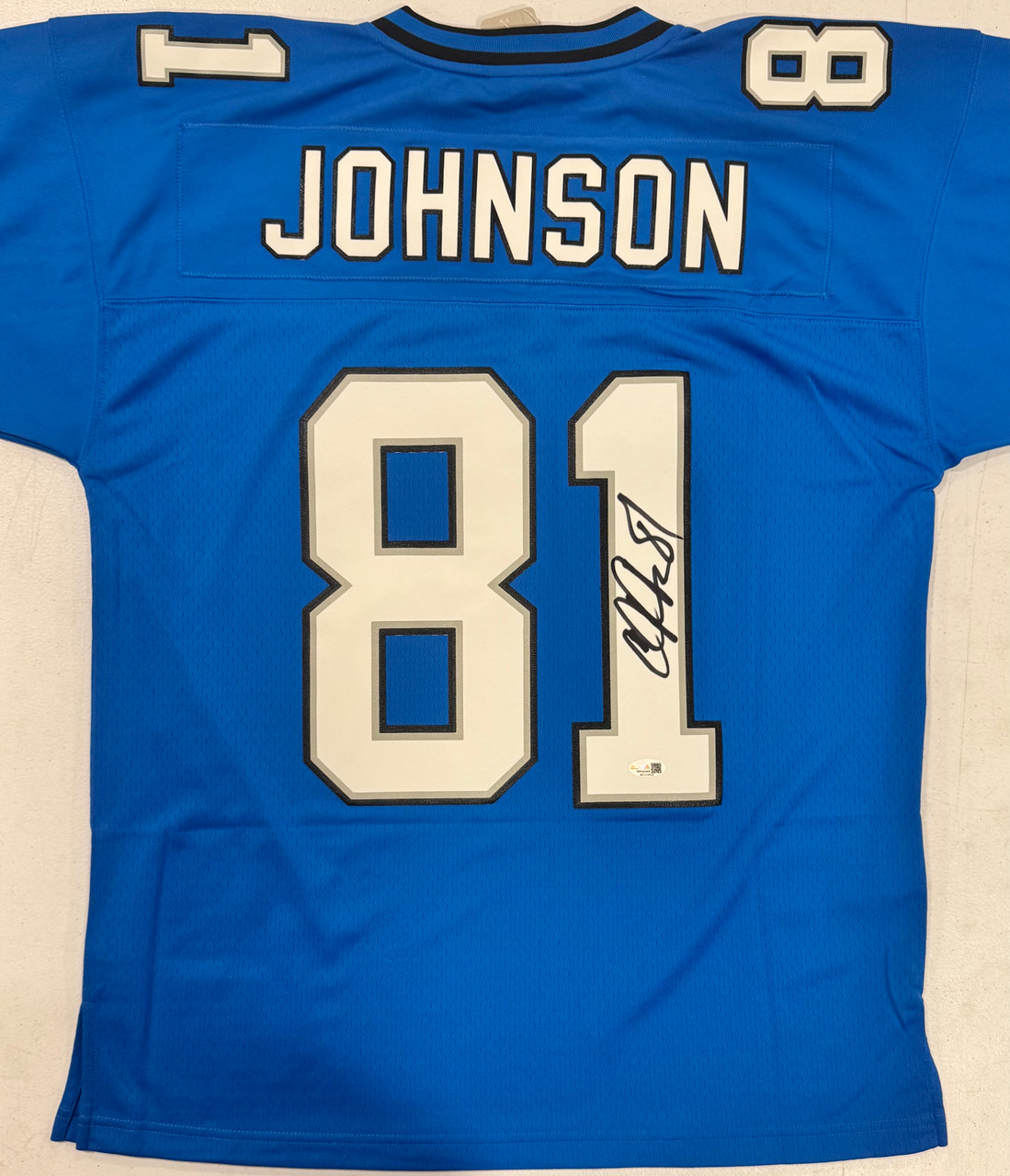 - Calvin Johnson Autographed Detroit Lions Mitchell and Ness Blue 2007 Legacy Replica Jersey