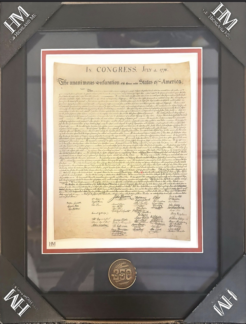 - Declaration of Independence America 250: Semiquincentennial The Highland Mint Framed Print with Coin