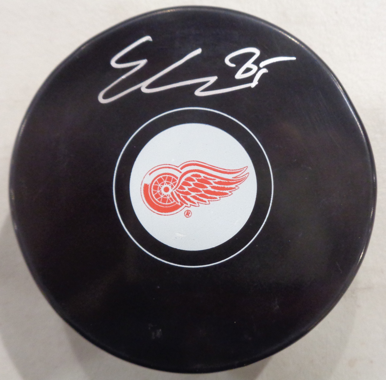 Click the button below to add the Elmer Soderblom Autographed Detroit Red Wings Logo Puck to your wish list.