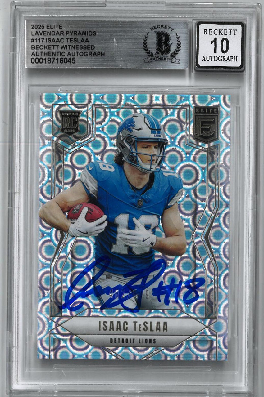 - Issac TeSlaa Autographed 10 Grade 2025 Elite Lavender Pyramids Rookie Card