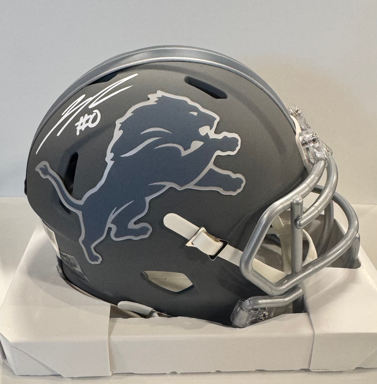- Jahmyr Gibbs Autographed Detroit Lions Slate Mini Helmet