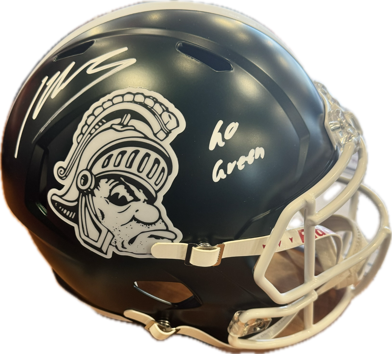 - Kenneth Walker Autographed Michigan State University Gruff Riddell Full Size Replica Speed Helmet w/ "Go Green"
