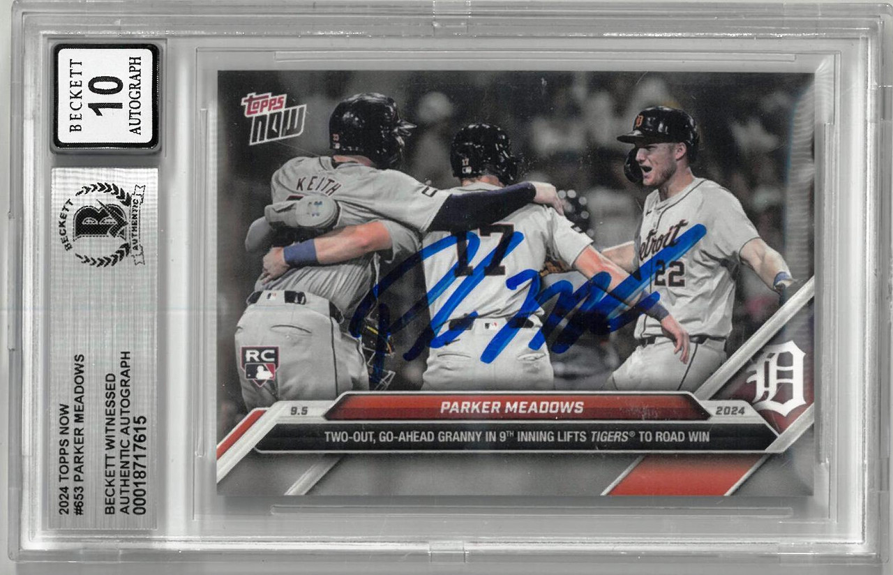 - Parker Meadows Autographed 10 Grade 2024 Topps Now #653 Rookie Card