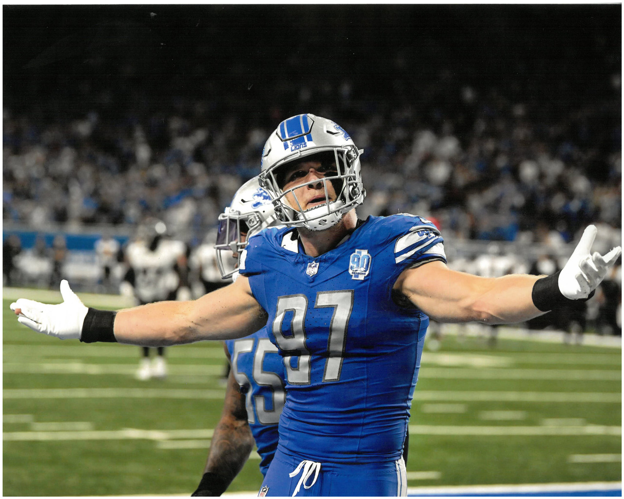 Click the button below to add the Aidan Hutchinson Autographed Detroit Lions 8x10 Photo #6 (Pre-Order) to your wish list.