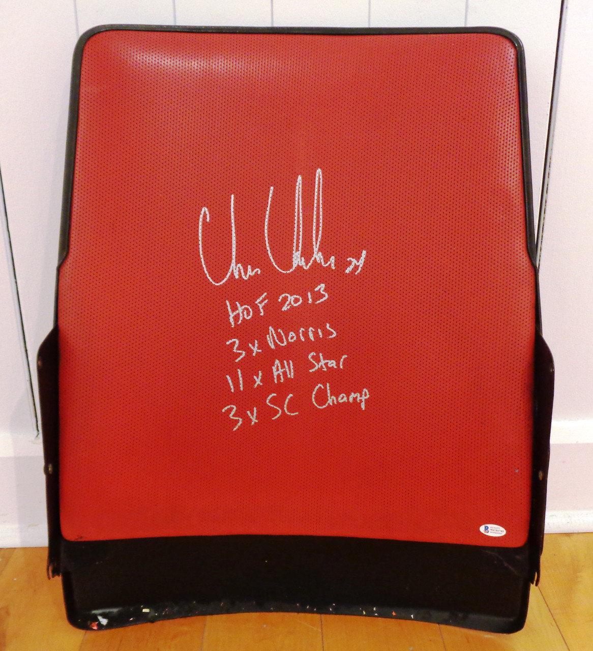 - Chris Chelios Autographed Joe Louis Arena Seatback w/ Four Inscriptions