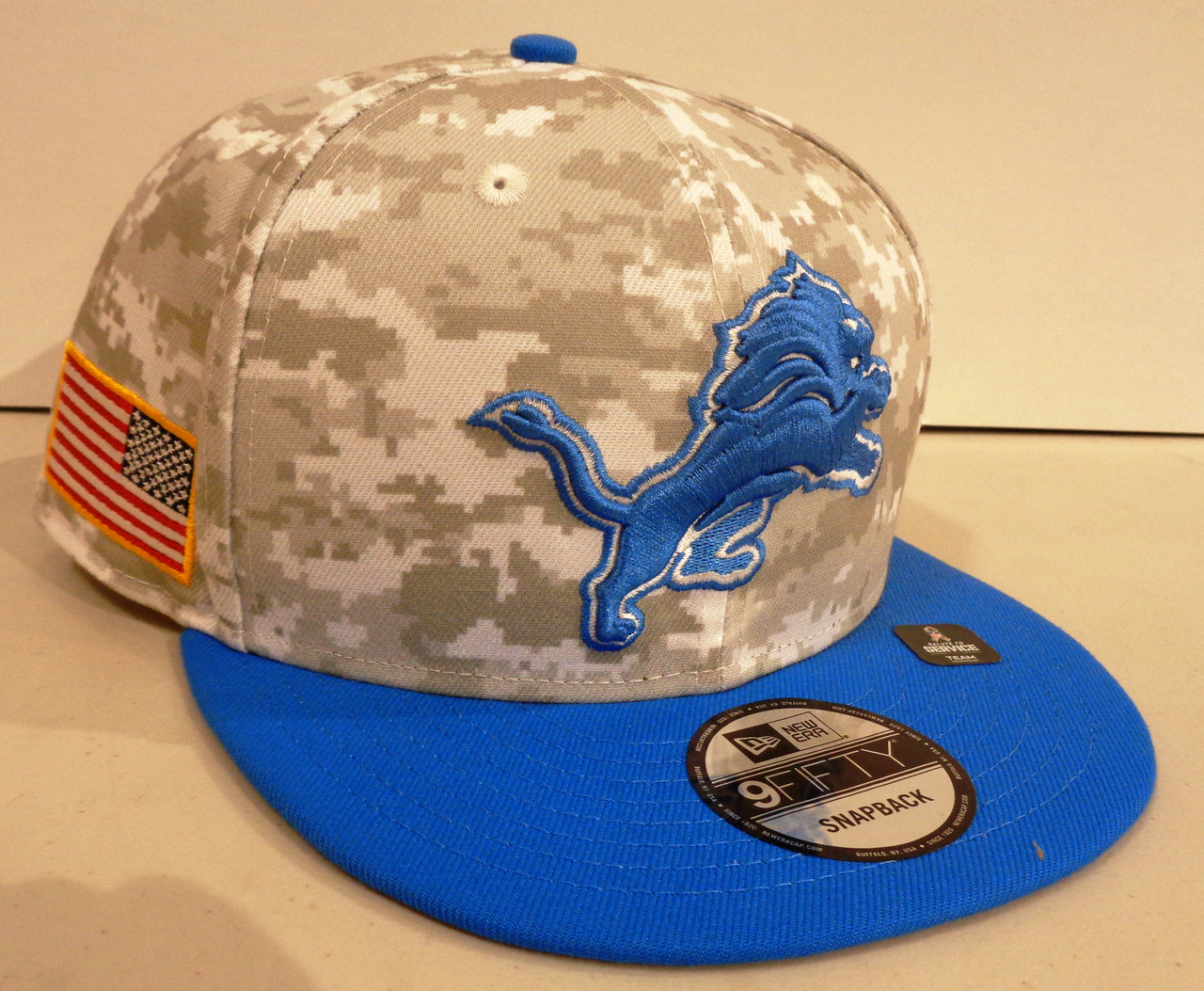 Click the button below to add the Detroit Lions New Era 2025 Salute To Service 9Fifty Snapback Hat - White Camo/Blue Bill to your wish list.