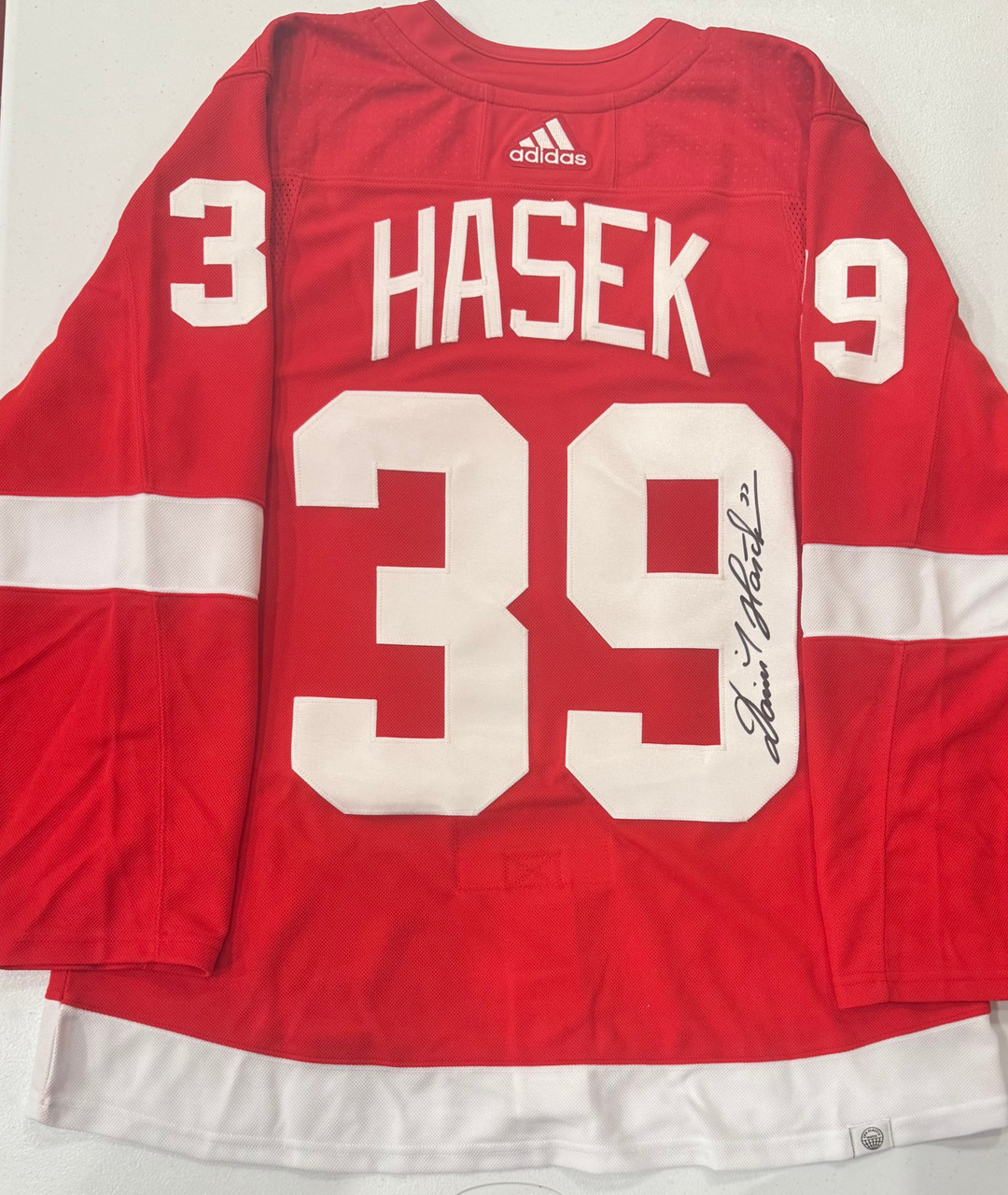 - Dominik Hasek Autographed Red Wings Adidas Jersey