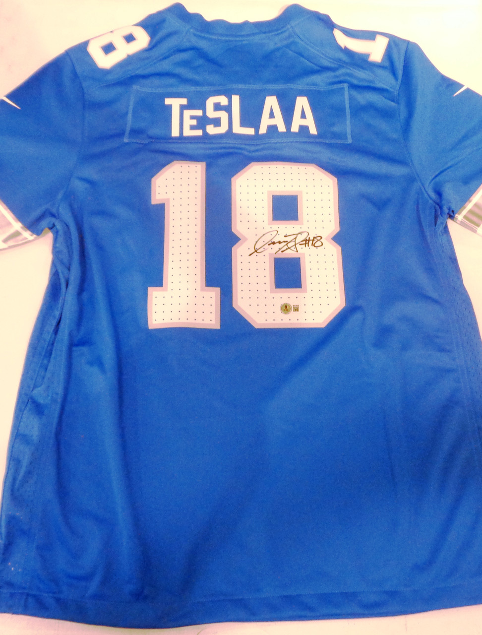 Click the button below to add the Isaac TeSlaa Autographed Detroit Lions Game Player Jersey - Blue to your wish list.