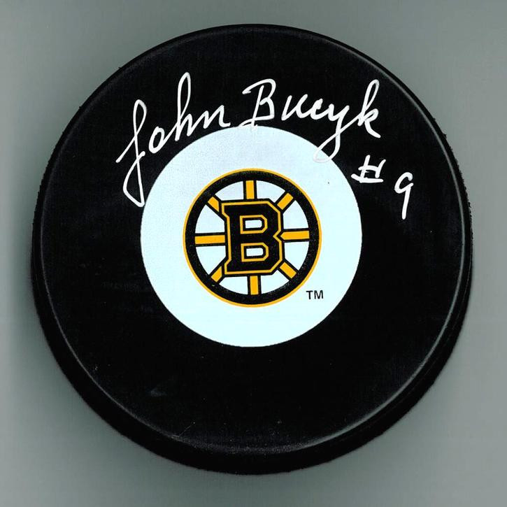 Johnny Bucyk signed this Hockey Puck at a DC SPORTS signing. Johnny Bucyk has appeared at DC SPORTS numerous times, most recently in 2011. All Johnny Bucyk autographs are sit-down signatures ensuring the highest quality autographs possible. All Pucks are hand-autographed using a paint pen and are shipped in protective cases to ensure they arrive safely.