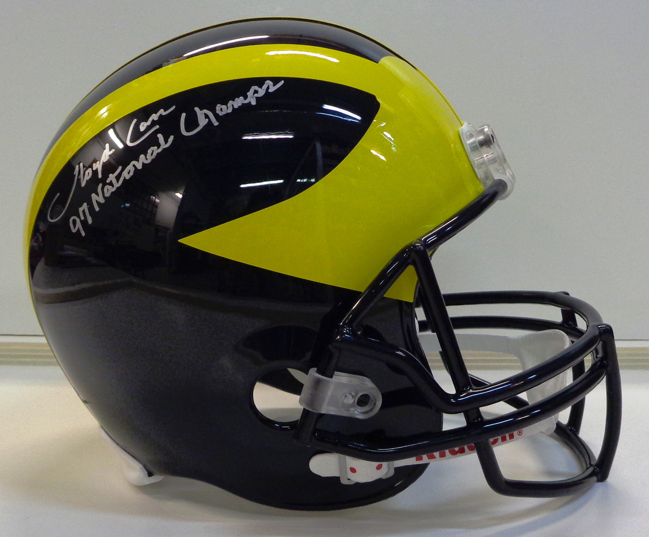- Lloyd Carr Autographed Michigan Wolverines Deluxe Replica Helmet with "97 National Champs" Inscription