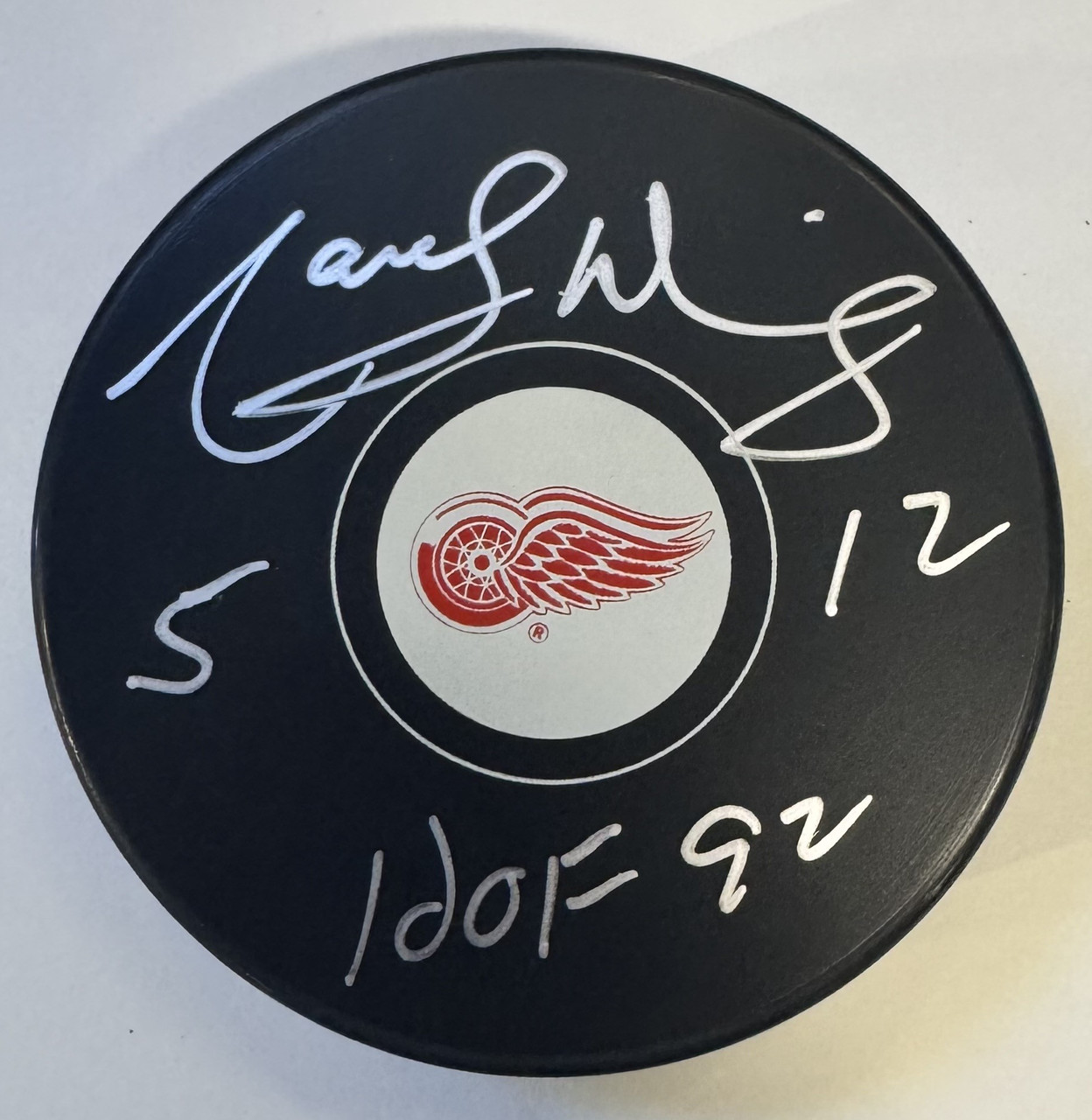 - Marcel Dionne Autographed Detroit Red Wings Logo Puck with HOF