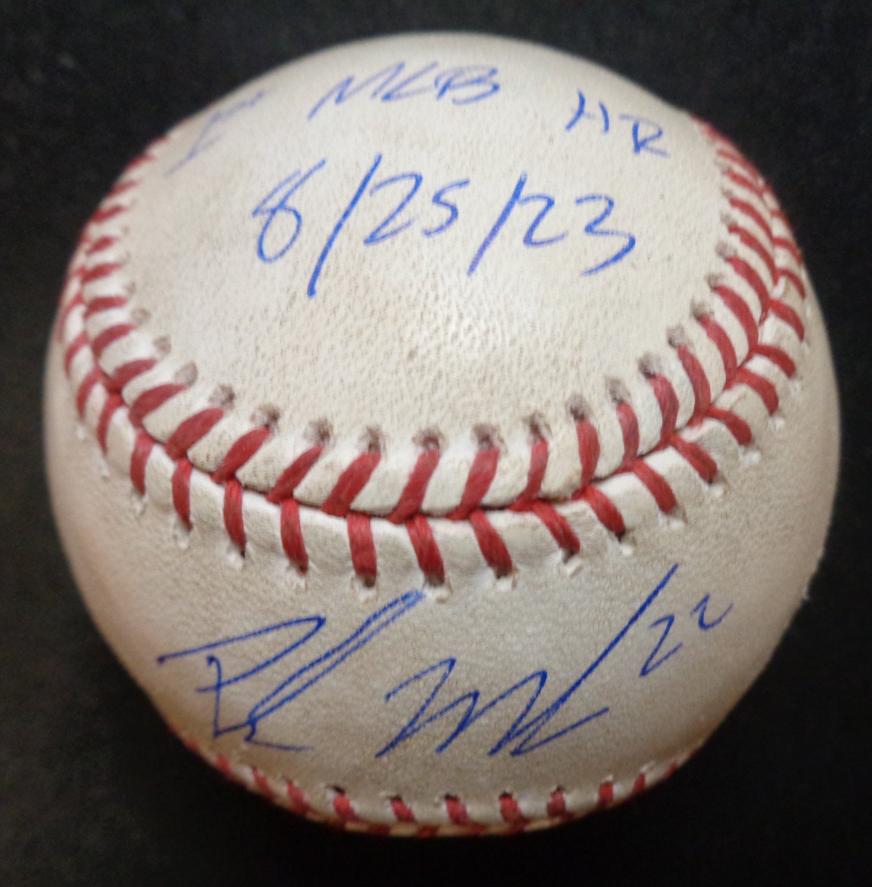 - Parker Meadows Autographed Game Used Official Major League Baseball w/ "1st MLB HR 8/25/23", "Walk Off!"