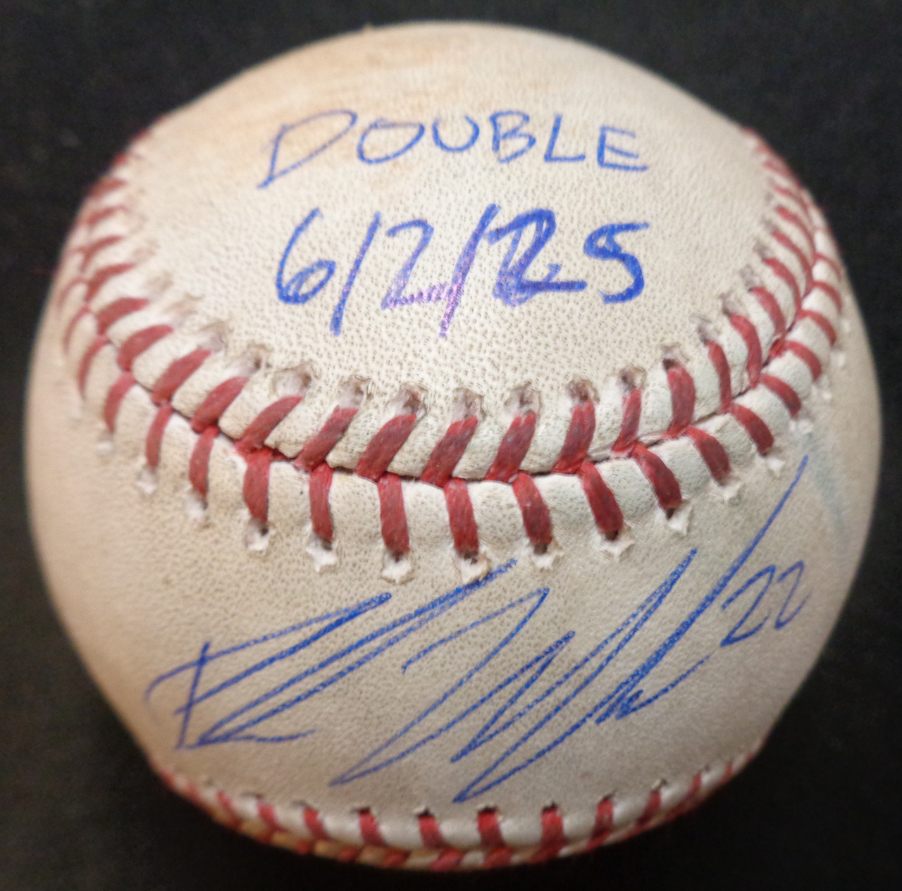 - Parker Meadows Autographed Game Used Official Major League Baseball w/ "Double 6/2/25"