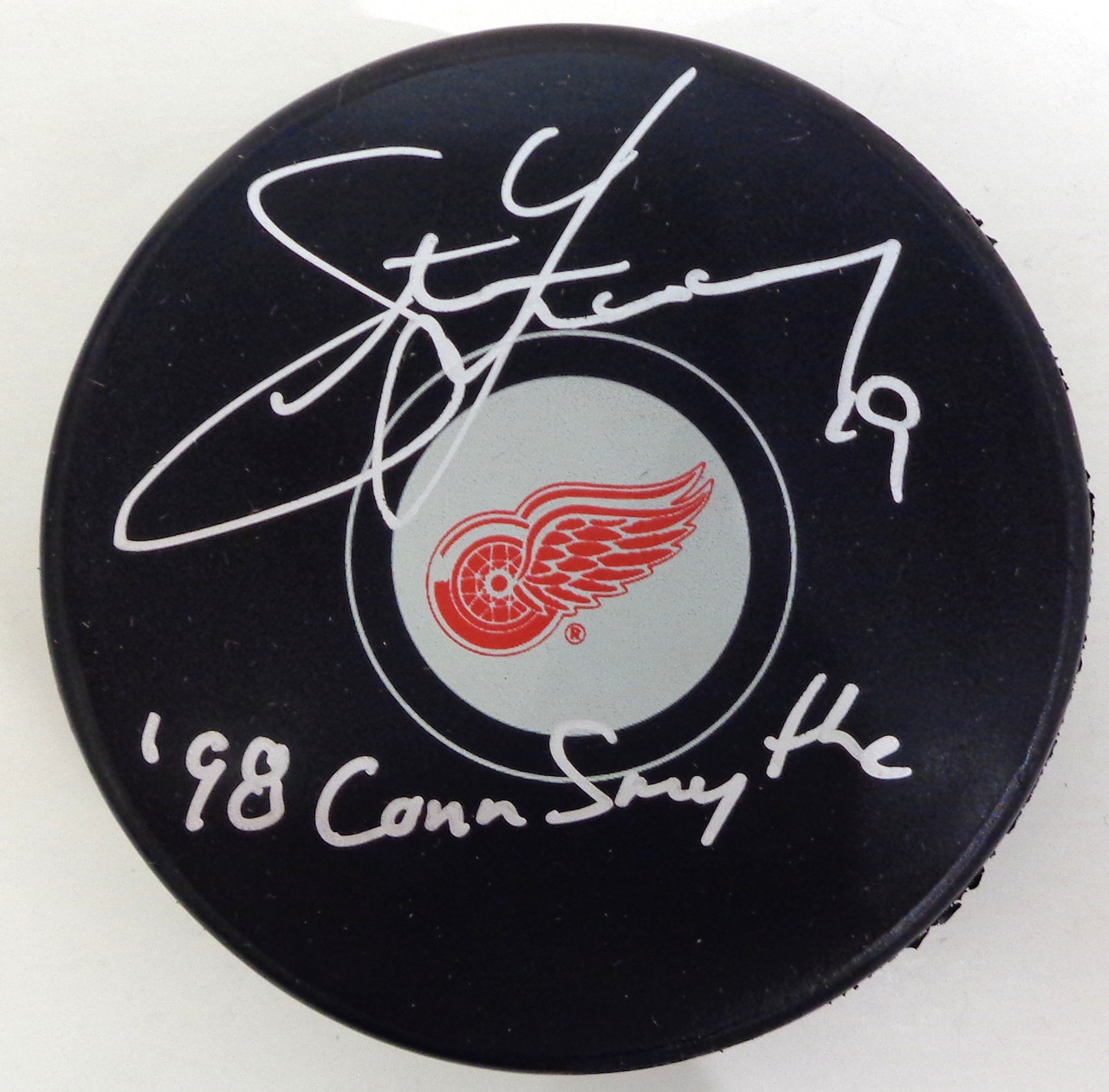 - Steve Yzerman Autographed Detroit Red Wings Puck Inscribed "98 Conn Smythe"